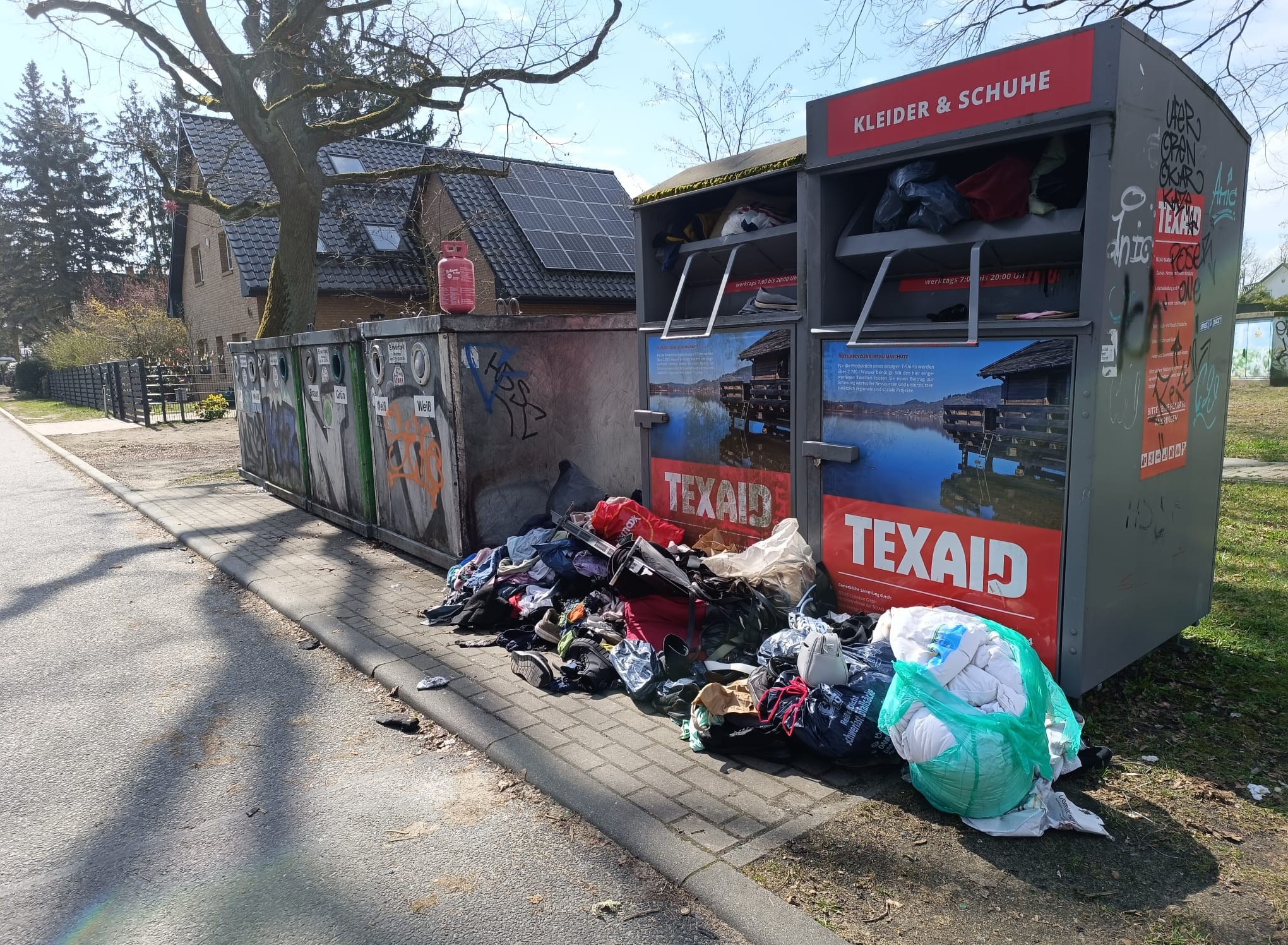 STAHNSDORF.    Wer gewohnt war, seine aussortierte Kleidung an der „Waldschänke“ abzugeben, sucht dort seit Kurzem vergeblich. Außerdem quellen die Container zum Beispiel im Enzianweg über. Es ist dasselbe Bild in der Friedrich-Naumann-Straße. Es ist nur zwei von mehreren Ärgernissen, die das Ortsbild in puncto Entsorgung derzeit prägen.